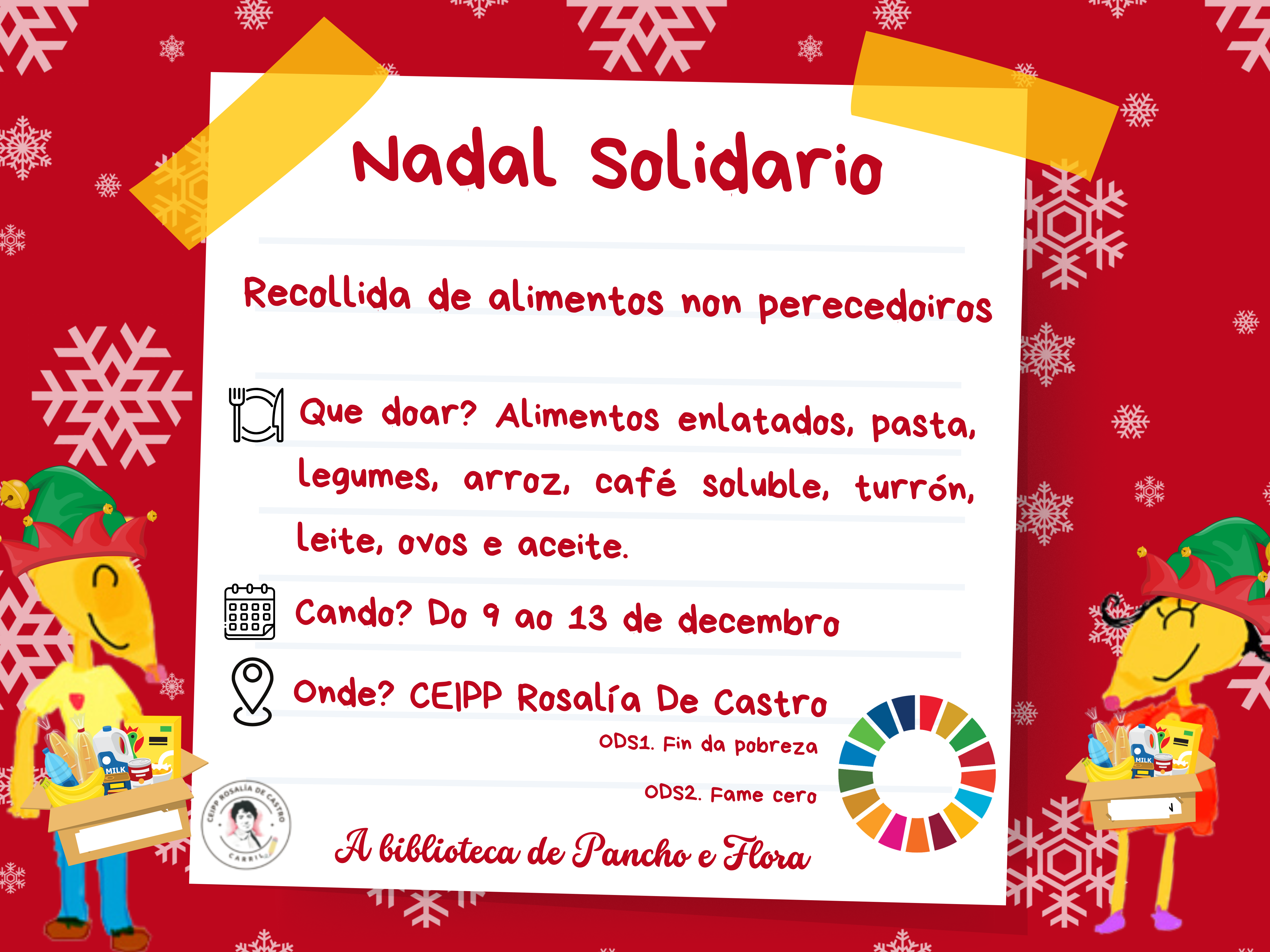 O mes de decembro chegou cargado de actividades no noso colexio, todas elas organizadas coa intención de fomentar valores como a solidariedade e a cooperación, ademais de contribuír ao cumprimento dos Obxectivos de Desenvolvemento Sustentable (ODS), en particular os relacionados co Fin da pobreza e Fame Cero.